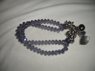 Un objeto hecho con pelos de la cola del caballo con cuentas azules y blancas.